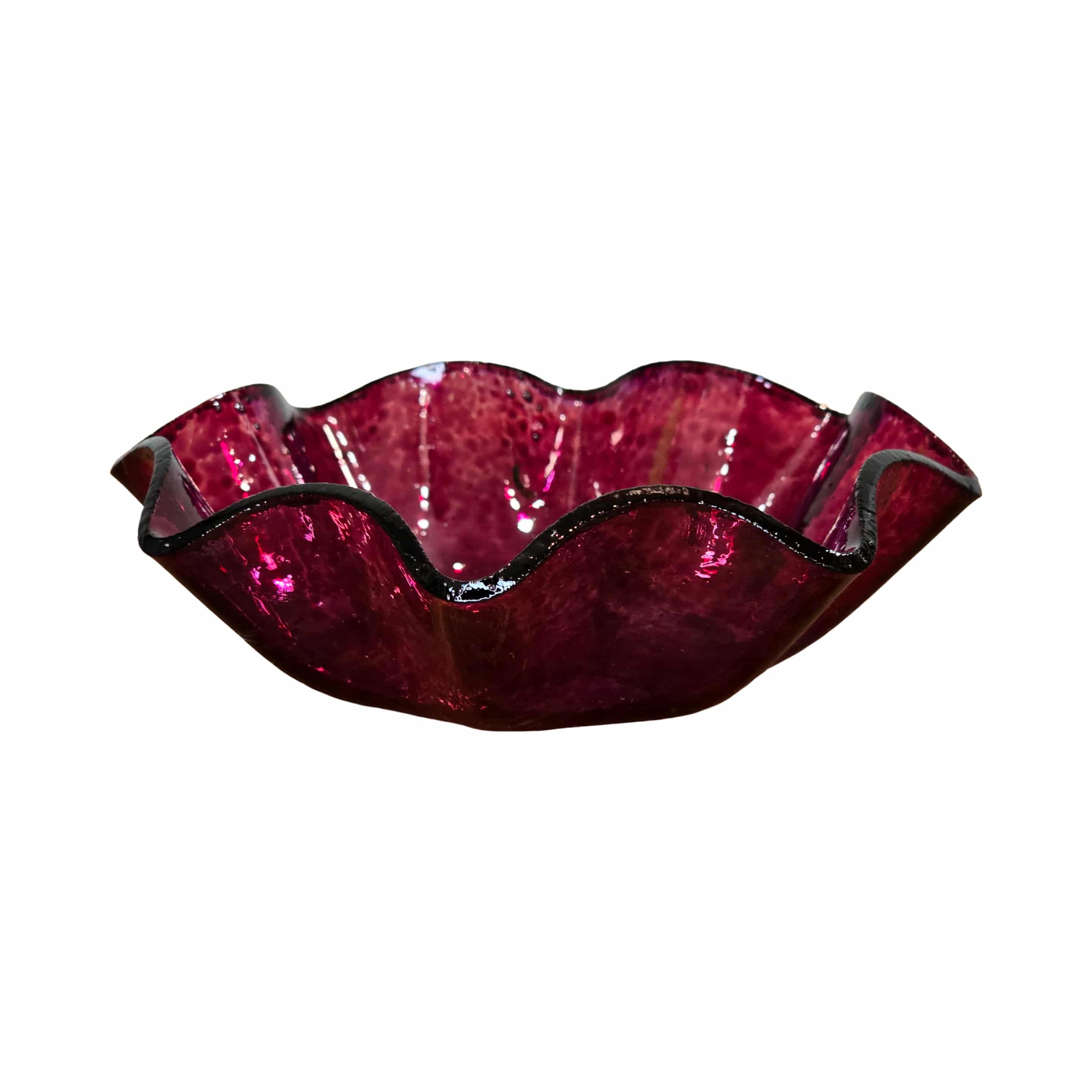 Handcrafted in a vibrant dark purple, it has a graceful ruffled shape that invites both touch and admiration.